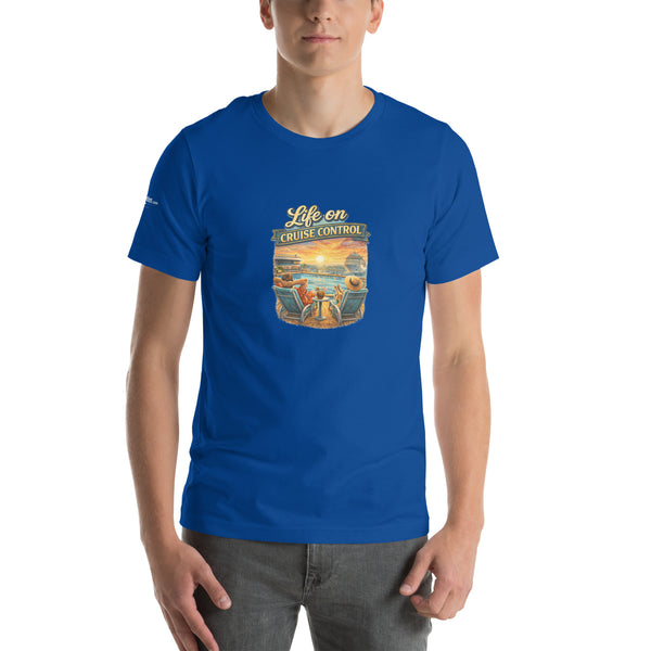 The “Life on Cruise Control” T-shirt is made for those who feel most at home on the open sea. Whether you’re counting down to your next sailing or already soaking up the sunset on deck, this shirt captures the relaxed, carefree lifestyle that only cruising delivers.
